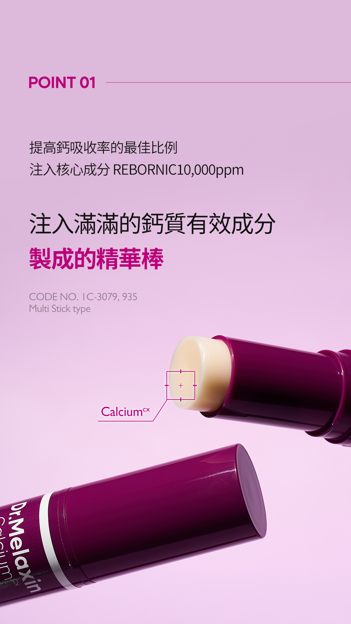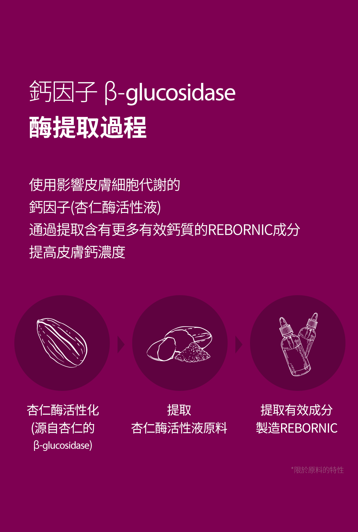 【以REBORNIC專利成分的最佳比例,增加鈣因子吸收率改善肌膚老化】