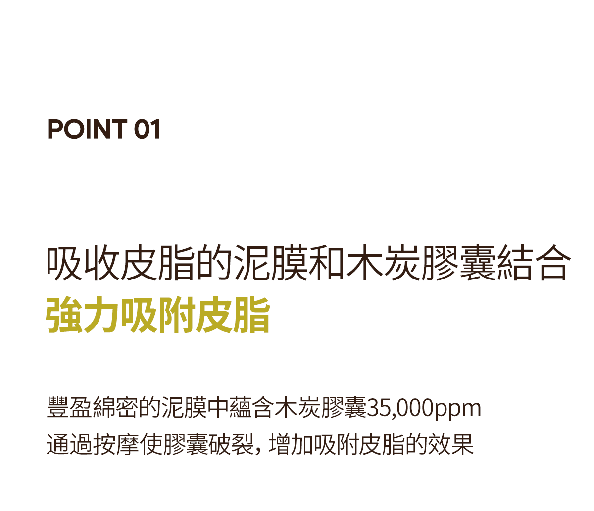 · 蘊含35,000ppm木炭膠囊,具有更強的皮脂吸附效果