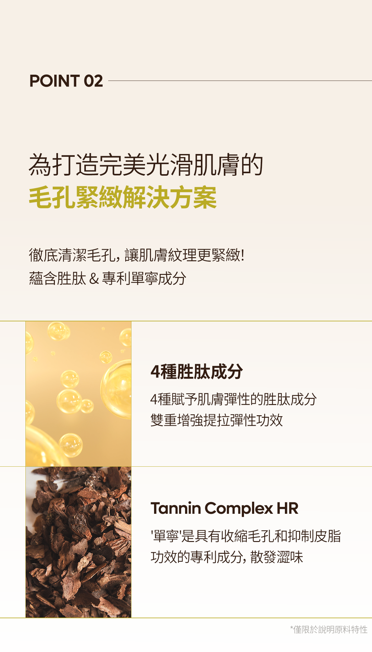 · 蘊含4種胜肽成分和收縮毛孔專利成分,實現毛孔緊緻護理
