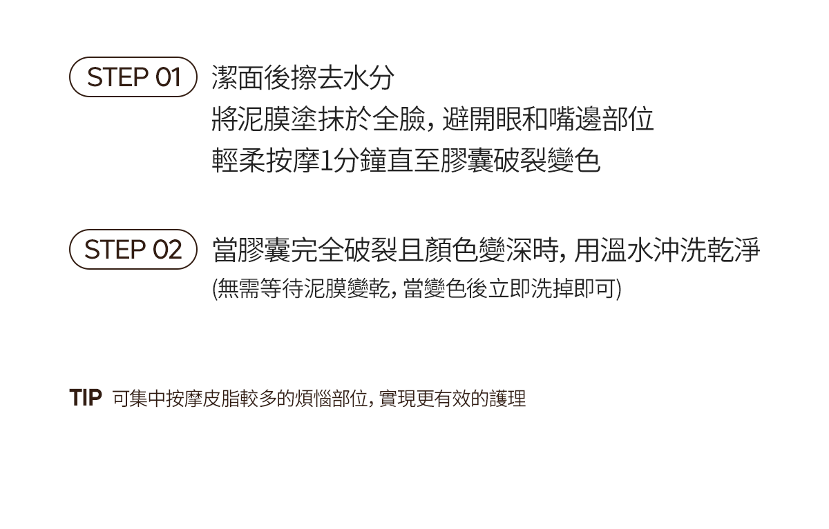 【越搓揉越能強力吸附皮脂的變色泥膜】