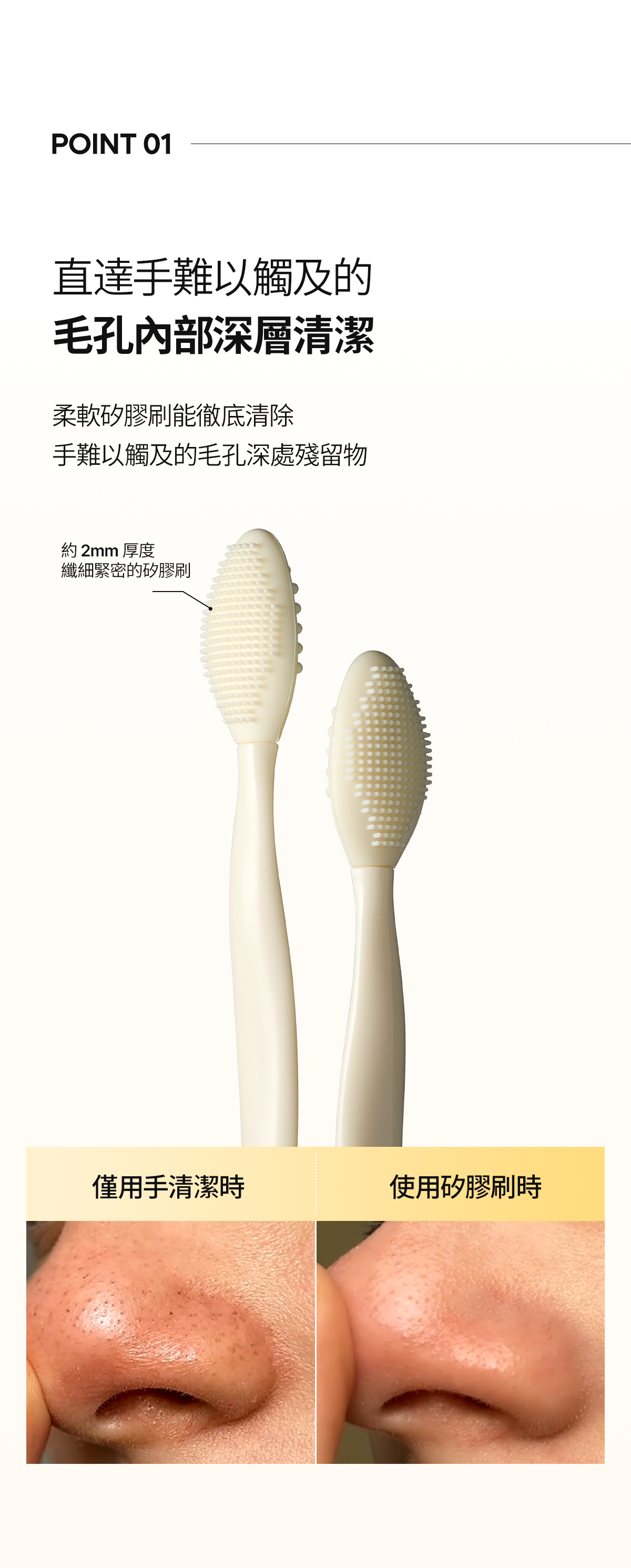 · 2mm 超細刷毛 + 柔軟突點,深入毛孔徹底清潔